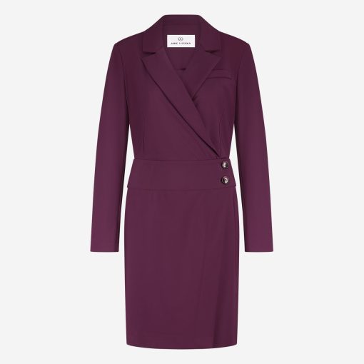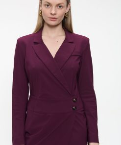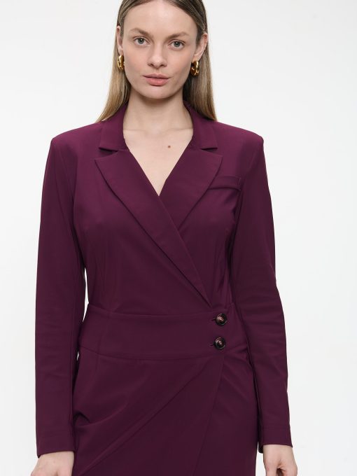 Sophisticated with a twist, the Laura Dress reimagines the classic blazer cut in a refined technical jersey. This tailored wrap design features a flattering V-neckline and a side-button closure that accentuates the waist. With its structured silhouette and rich fabric, it’s a confident choice for both professional and formal settings.